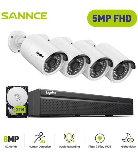 5MP kit de videosurveillance 4 × caméras smart ir vision nocturne IP66 sécurité système 2TB - Sannce