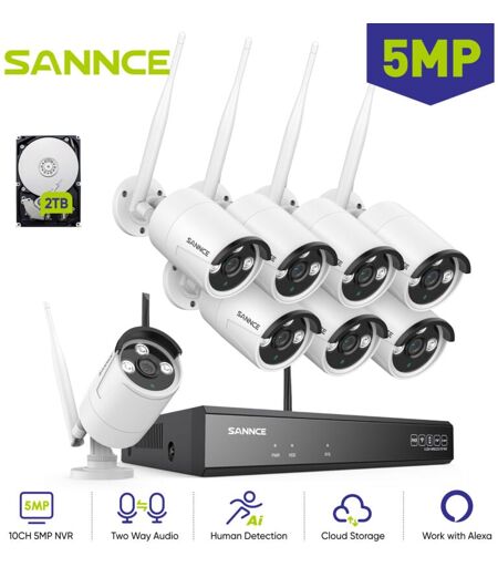 5MP Kit Caméra de Surveillance WiFi nvr 8×Caméras Vision Nocturne Interphone Bidirectionnel Sans fil cctv Système de Sécurité Vidéo 2TB - Sannce