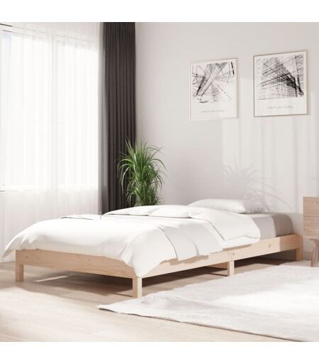 Quoi de mieux que de profiter d'une bonne nuit de sommeil à la fin d'une journée bien remplie ? Ce lit superposé en bois simple mais intemporel est le choix parfait pour vous lorsque vous vous détendez après une longue et épuisante journée. Bois de pin massif : le bois de pin massif est un matériau naturel magnifique. Le bois de pin a un grain droit et les nœuds donnent au matériau son aspect caractéristique et rustique.Fonction empilable : ce cadre de lit peut être empilé l'un sur l'autre dans un espace de vie limité.Cadre de lit robuste : le sommier en bois assure robustesse et stabilité. Les lattes offrent un soutien supplémentaire à votre lit, prolongeant ainsi la durée de vie de votre matelas.Design intemporel : simple sans trop de fioritures, le cadre de lit est particulièrement adapté aux espaces de vie minimalistes. Remarque :La livraison comprend uniquement un cadre de lit de jour. Le matelas n'est pas inclus. Vous pouvez consulter notre boutique pour trouver les matelas ...