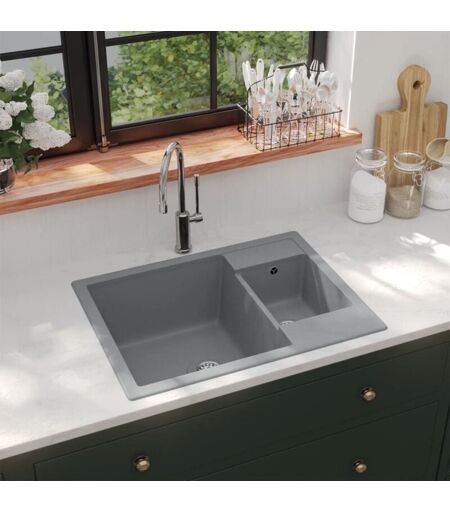 Maison Chic - vier de cuisine-Vasque de cuisine et deux lavabos trou de trop-plein Gris Granit 105166