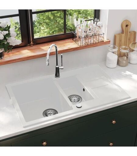 Maison Chic - vier de cuisine-Vasque de cuisine Granit Double lavabo Blanc 744500