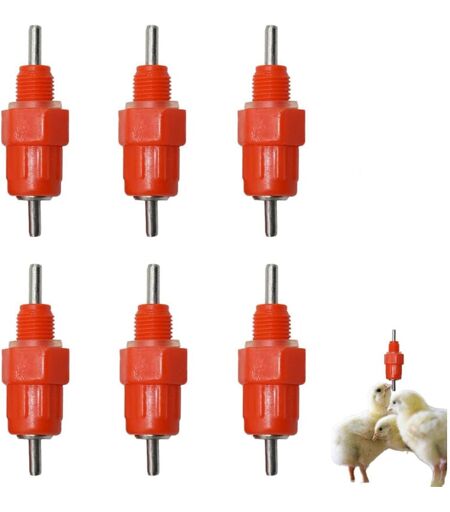 APPLICATIONS LARGES - vous pouvez les appliquer sur des tuyaux, des seaux et plus encore pour en faire une mangeoire pratique pour les poulets, les oies, les poulets de chair, les reproducteurs, les poulettes, les canards et les gibiers à plumes, etc. FACILE À NETTOYER - ces tétines abreuvoir sont faites de plastique durable et acier inoxydable, et les tétines peuvent être retirées afin que vous puissiez les nettoyer facilement en cas de besoin verrez plus jamais le désordre causé par les bols à eau ou autres abreuvoirs traditionnels QUANTITÉ - 6 paquets; Il est recommandé que 3 poulets / oiseaux partagent 1 mamelon, et le poulet obtiendra facilement de eau propre et fraîche de ces mamelons à 360 degrés MESURES DE EAU - la taille de la vis est de 11/32 pouces et le trou pilote du foret est de 5/16 pouces; Matériel: plastique et acier inoxydable Large applicatio - Convient aux poulets, pigeons, oiseaux, cailles et autres animaux domestiques. Outil idéal pour la maison ou les élevages ...