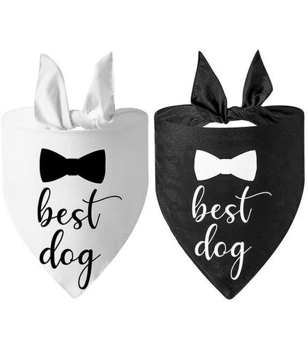 Ensemble D'écharpes Pour Chien De Mariage - Écharpes Noires Et Blanches Pour Chiens De Taille Moyenne Et Grande, Polyester De Haute Qualité, Parfaites Pour Les Occasions Spéciales