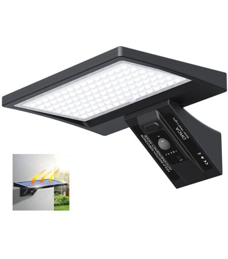 【104 LEDs Brighter Solar Light Outdoor】The solar light outdoor is equipped with 104 ultra-large LED chips with high concentration power and high light guiding lenses. Curved lighting panel, 95% efficient lighting area, provides 150° wide angle lighting. This creates a bright and safe environment for passersby, even at night. 【4 Adjustable Modes】Solar outdoor lights with 4 lighting modes: ① Infrared sensing mode: stays off when no motion is detected and lights up when motion is detected; ② Infrared sensing and dimming mode: stays on when no motion is detected and lights up when motion is detected; ③Dimming Mode: Maintains the dimming state all night, the infrared sensor will stop working in this mode.④ SOS Mode 【High Efficiency Solar Panels & High Capacity Batteries】The solar lights outdoor use 164 square centimeters high-performance solar panels charge more. This allows the high capacity battery to quickly hold 3 times more charge than other leading manufacturers. From a full charge ...