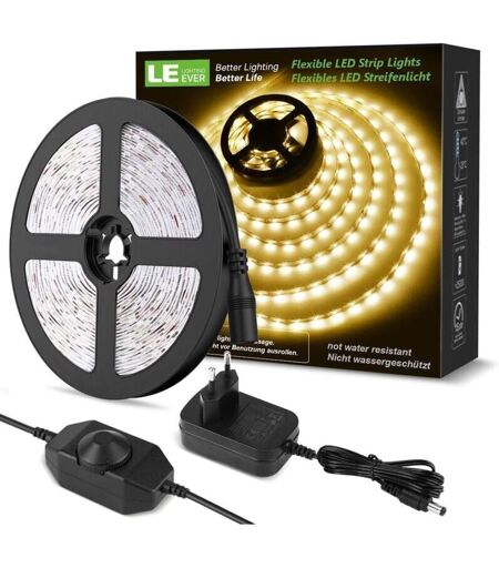 COMPLETE KIT: Comes with a complete kit (10m LED strip, power supply and dimmer). Connect them together and you have everything you need to create a vibrant lighting atmosphere. Super bright and safe to use: 600 SMD 2835 LEDs emit super bright warm white light with 1200 lumens. Low voltage power supply makes the light strip visible and safe to use EASY TO INSTALL AND CUT: Simply stick this self-adhesive LED strip to any clean, dry surface (glass, wood, wall, metal, etc.) without drilling or wiring. Can be cut to shorter lengths if needed Wide application: This thin, flexible light strip is perfect for living room, kitchen, bedroom, stairs, drawers, attics, hallways, etc. ...