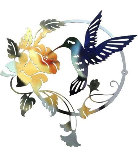Ymyny - Metal Bird Silhouette Metal Wall Art Round Wall Decor Wall Hanging for Home Office Living Room Hotel Decoration (31x32cm) (Blue)
