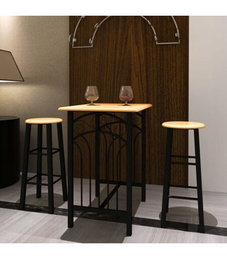 Cet ensemble de petit-déjeuner élégant et contemporain comprend une table de petit-déjeuner rectangulaire et 2 chaises hautes avec une finition de bois brun roux. Il est idéal pour les petites maisons ou lorsque vous cherchez à économiser de l'espace et à ajouter une touche géniale à votre maison. Il s'intégrera parfaitement dans n'importe quel environnement de cuisine ou de maison. Les surfaces sont en bois durable, facile à nettoyer. Les cadres en acier offrent une excellente stabilité. De plus, les chaises peuvent être cachées sous la table lorsqu'elles ne sont pas utilisées, économisant ainsi beaucoup d'espace. La livraison comprend 1 table et 2 tabourets. Matériau : MDF, acier Couleur : noir / brun roux Dimensions de la table (l x P x H) : 72,5 x 55 x 82,5 cm Dimensions du tabouret de bar (l x P x H) : 30 x 30 x 70 cm Hauteur du siège : 70 cm Capacité de charge max : 110 kg ...