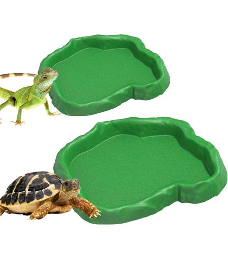 2 X Terrestrial Turtle Drinker Accessory Terrestrial Turtle Footprint Reptiles Bowl Feeding Bowl For Small Reptiles Snakes Tortoise Lizards (Green)