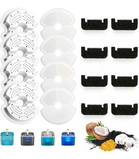 Set Of 8 Cat Water Fountain Filters, 8 Fountain Filters With Resin And Activated Carbon+8 Pongs, Quadruple Filtration Replacement Water Fountain Filter For Dogs