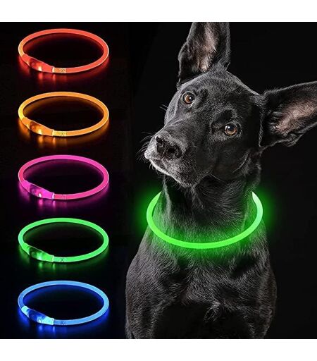 [5 COLORS AND FIT FOR ANY DOG]5 colors available and can be cut to any size. Suitable for any dog whose neck size is less than 27.5 inches, order now, no more wasting money on wrong size collars. [KEEP SAFETY]Keep your dog 360° high visibility, walking in the dark would be safe. The driver will see your dog far away. Stay safe and be seen during your walks, runs, joggings or early morning and evening hikes with your dog. [USB RECHARGEABLE] No need to replace the battery, this collar can be charged via USB power adapter of mobile phone charger, laptop, PC, tablet, smart TV, etc. [EASY TO USE AND CLEAN]One click to switch between fast flash, slow flash, steady glow and off. This collar is so easy to clean that you can make it as clean as new with a simple wipe. [WATER RESISTANT] GOOD OPERATION]Excellent water resistance makes it work well in rainy days. Good job in almost every case. ...