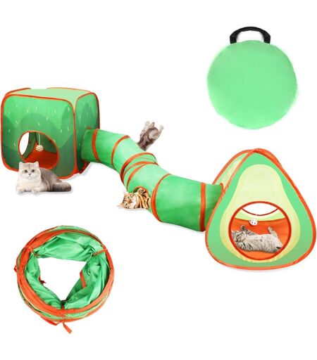 3 in 1 design: the combined design of cat tunnel, cat cube and cat tent; This design can meet the needs of cats and offer them with a safe and comfortable resting place; The play tunnel can become a favorite toy and resting place for cats at home or outdoors High quality materials: this rabbit toy is made of tear-resistant polyester and crackle paper to withstand the strong pressure and friction of cats playing and crawling; It also includes a spring steel wire frame that ensures the stability and overall structure of the play tunnel Removable construction: the cat toy set is the ideal cat tunnel and the ideal rabbit toy for interacting with the cat in the house; This toy set can be combined into different shapes, and the flexibility of changing shapes will keep your kitten cool Fun and interactive: the play tunnel tube is very spacious for cats of all sizes to move, crawl and rest freely; The outlet is equipped with hanging balls and bells that increase fun and interactivity and attract cats to experience the tunnel Easy to carry: this avocado cat toy can be folded, and also includes a carry bag for easy travel and storage; This design also makes it easy to clean and preserve the appearance and quality of cat accessories ...
