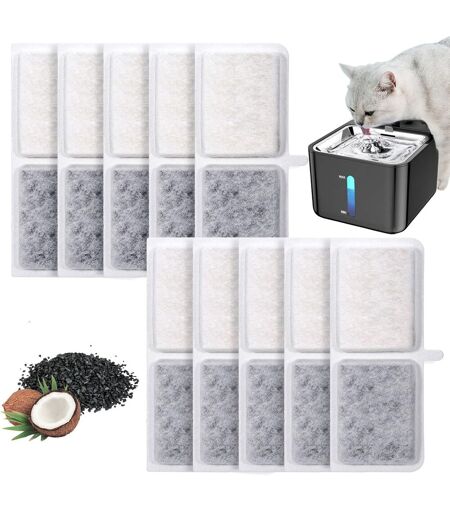 [Multiple Filtration]Our cat water fountain filter provides triple filtration to provide pure and fresh water to cats. A double layer of polyester cotton helps filter hair, sediment and debris; activated carbon absorbs impurities and odors; natural resins remove residual chlorine, odors in water and soften tap water. [Widely Compatible]Cat water fountain filter size: 11.2 x 4.5 cm, compatible with all kinds of cat water fountains. The cat water fountain filters can also be folded to fit other cat water fountains. Please make sure the size is suitable for your cat water fountain before purchasing. Value pack: The package includes 10 pieces of cat water fountain filters. Each cat water filter is individually packed for easy storage and dust protection. [Easy to use]Rinse the cat fountain filters thoroughly before using them to remove coal dust. It is recommended to replace the filter once every 1-2 weeks in summer (2-4 weeks in winter). [Protect Your Pet's Health]Our cat fountain filter provides clean and fresh water for your pet, helping to reduce the risk of UTIs, protecting your pet's health. ...