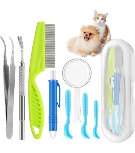 [5 Different Ways to Eliminate Ticks]Professional tick tweezers for dogs come in a pack of 7 in a box. 3 different sizes of tick hooks; 1 x double-sided tick tweezers; 1 x feather tick tweezers; 1 x comb, 1 x magnifier With a variety of tick removal tools, you can choose the right tool to easily remove ticks from your pet. The best tick removal tool ever designed! [Remove Ticks in Seconds]With the tick hook tool, you can safely and easily remove annoying ticks without crushing them. Remove ticks in seconds and without too much pain for your pet and quickly and completely eliminate dangerous blood-sucking animals. [Easy to Carry & Reusable]Tick tweezers can be used to safely remove ticks of all sizes, types and gravities. Our tick tweezers set is also portable. Keep it in your backpack, tackle box, first aid kit and anywhere you need it. To catch a tick, slide the tip of the hook between the tick and the skin, have two full turns crochet and your pet is free! [Wide Application]Tick hook, the safest, fastest and easiest tick removal and lifting tool for cats, dogs and other pets. With a variety of tick removal tools, you can choose the right tool to easily remove ticks from your pet. [100% SATISFACTION GUARANTEE]I think your pet will be very satisfied with this gift. If you have any questions about our tick tweezers set, our team will help you solve your problem within 24 hours. ...