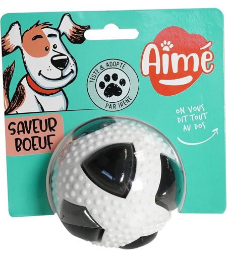 [Interactive dog toy] Aimé offers you a dog ball, ideal for playing with your dog for long hours; This football ball allows you to exercise with your companion and share moments of complicity [To awaken your dog's senses] This Aimé dog toy will awaken all your pet's senses; This 8cm ball allows you to play with your dog while stimulating his sense of smell and hearing through his squeaker and beef smell [Beef smell] Aimé dog ball has a delicious beef smell; So this dog toy will tickle your dog's nostrils, and help him play longer; This ball is a must-have to own in your toy box [With squeaker and grelôt] Our Aimé football helps to develop your pet's hearing thanks to the presence of his squeaker and his sleet; Ainis, the squeaker activates by squeezing its soft rubber, a bell ball waves by shaking the bouncy ball; This dog toy will be ideal for playing with your dog while developing his senses [About Aimé] Aimé offers a range of products and accessories to reinforce the bond of love that unites you with your pet: toys, treats, bedding, litter and scratching posts and much more; All Aimé products guarantee animal welfare ...