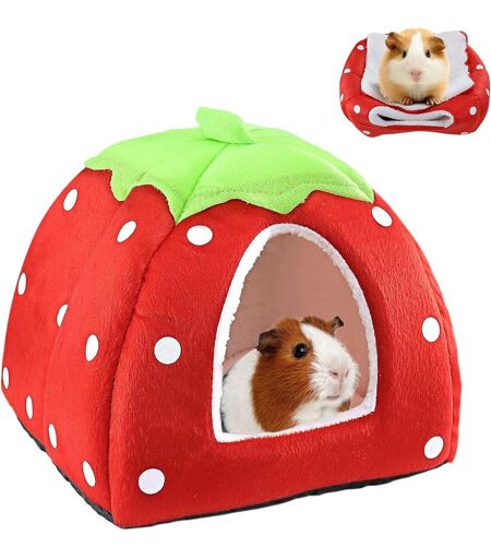 House for Guinea Pig Bed Rabbit Plush Small Animals Sleeping Winter Indoor Cabin for Chinchilla/Hedgehog/Guinea Pig (Strawberry)