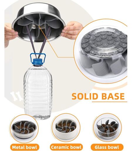 Slow Feeding - Efficient Food Slowing Down - Simply press to attach the HAPPY HACHI Slow Feeder insert to the bottom of the bowl. The new combination of rotating blades slows down your dog's meal time by 10 times! Helps reduce food crises and reduce digestive disease in dogs 36 Powerful Suction Cups The anti slip bowl has 36 strong suction cups on the bottom, it holds firmly in the bottom of the dog bowl without adding water. Don't worry about your dog taking it out of the bowl. Widely suitable for stainless steel, ceramics, glass and various materials for dog bowls CUTTABLE DESIGN FOR ALL SIZE BOWL - The end of this dog anti loop plugin has multiple cutting marks, you can cut it according to the size of your dog bowl. Ideal for dog bowls with a base diameter of 14 to 18 cm (opening from 13 to 20 cm) and can be cut to fit a dog bowl of at least 4.7 inches. Suitable for large, small and medium breed dogs SAFE & NON-TOXIC - Our slow feeding bowl is made of 8 pieces of food grade silicone spiral, no harmful substances. The silicone structure is soft and elastic, unlike hard plastic, your dog's nose will not be damaged when you eat Easy to Clean - Just open the connection between the suction cup of the slow food insert and the bottom of the bowl, which means it can be removed. You can put the spiral anti-loop dog bowl in the dishwasher, with you can also rinse it directly under running water, making cleaning a breeze ...