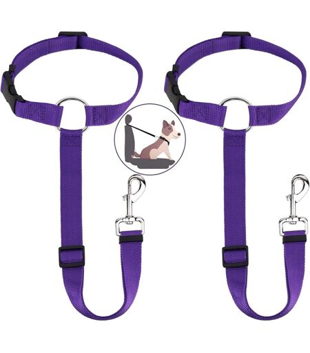 Set Of 2 Universal Adjustable And Durable Dog Harness For Back Seat With Carabiner, Dog Seat Belt Safety Belt For Car, Purple