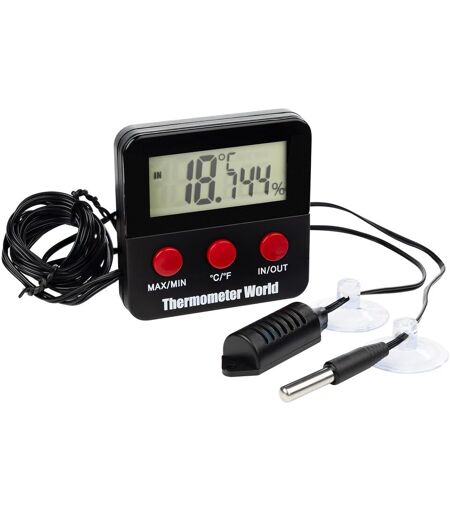 ESSENTIAL ACCESSORIES FOR REPTILES - Our digital reptile tank thermometer hygrometer monitors the temperature and humidity of snake, lizard and reptile tanks with the two remote probes. EASY TO INSTALL - Simply place the main unit of the thermometer hygrometer outside your reptile/vivarium tank and power the two probes remotely from the back or tank cover to monitor the temperature and humidity of reptile habitat. MAX MIN MEMORY - Reptile thermometer hygrometer will automatically measure maximum and minimum temperatures. This allows you to see all fluctuations in your pet's environment. FANTASTIC VALUE - When it comes to vivarium and reptile accessories, including thermometers and hygrometers, we only offer the best quality and accuracy, and this useful thermometer hygrometer is just that. EXCEPTIONAL CUSTOMER SERVICE - With extensive experience, our Thermometer World team is here to answer any questions you may have. We want you to be 100% satisfied with your purchase from us. ...