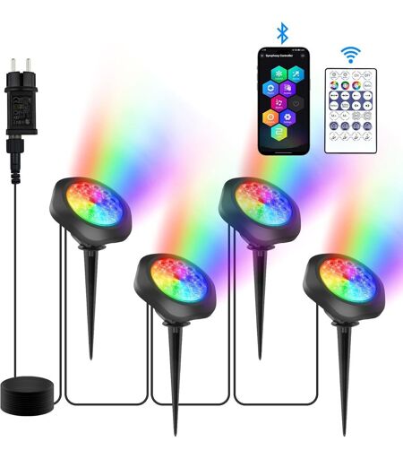 Submersible Led Lights, Spotlight Lamp With Bluetooth App Control, Ip68 Waterproof Multi-Color Lighting For Aquarium, Garden, Yard, Pool, Fountain 4-In-1