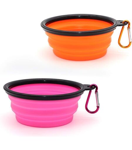 2 Pieces Collapsible Silicone Dog Bowl For Dogs, Travel Bowls For Dogs And Cats, Collapsible Silicone Travel Bowls For Dogs (Orange And Pink, Small)