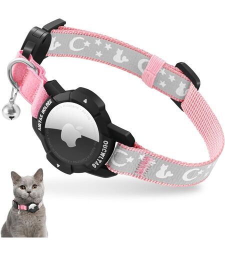 Reflective Airtag Cat Collar, Accessory Compatible With Apple Airtag, Adjustable Collar With Safety Buckle And Elastic Anti Strangulation (Pink, Kitten 18-26cm)