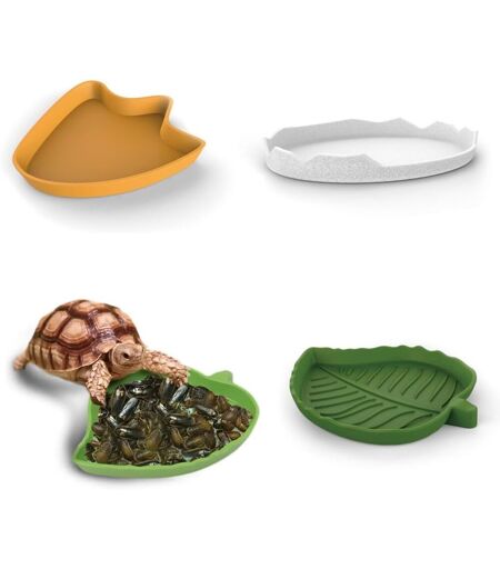 Made of high quality plastic, our leaf turtle bowls are devoid of sharp edges and burrs, ensuring a safe and clean dining environment for your reptile. Available in small and large sizes, this set of three leaf shaped reptile bowls is ideal for simultaneous food and water. Designed to mimic natural foliage, the color and shape of the bowls attract your pet's attention and encourage them to use them. Perfect for various reptiles, including turtles and lizards, these bowls have shallow edges that allow even the smallest animals to climb up and down freely. Featuring a smooth surface with a subtle ridged texture, reptile food and water bowls are easy to clean and dry quickly. Regular cleaning is recommended. ...