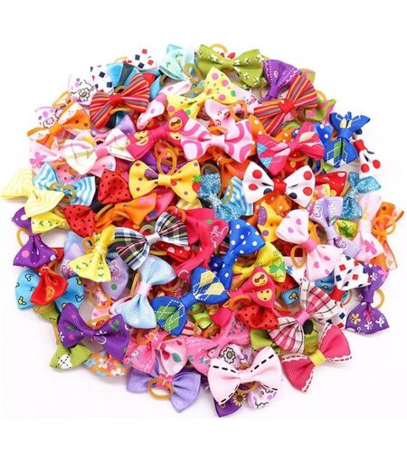Dog Hair Accessories Bow Headdress - Bowknot Pet Hair Rope With Rubber Bands For Small Dogs, Cats, Random Colours (30 Pieces)
