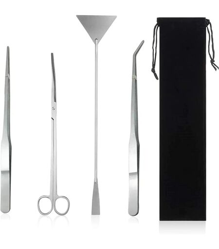 [Premium Material]Squascaping pliers kit is made of high quality stainless steel, which will not rust after each use through washing and drying, and has a long service life. It does not cause any water pollution and helps maintain healthy water for fish. [Aquatic Tools ] The set includes all essential tools for aquarium plant maintenance: long pliers, curved pliers, curved scissors and spatula for cutting and removing faded and rotten leaves of aquarium plants. Ergonomic design: the straight and curved pliers are equipped with a serrated tip that allows a secure grip of objects without slipping. This facilitates a comfortable grip and allows simple and accurate plant pruning and care. [Wide Application]Ideal aquarium tool for all kinds of aquarium plants, aquarium substrates, gravel and other aquarium decorations. It allows for precise pruning and care of plants without disturbing the rest of the decoration and plants. [With Storage Bag]After use, all aquarium accessories can be stored easily and safely in the included storage bag. This is a simple and convenient way to maintain order in the aquarium. If you have any further questions, please feel free to contact us. ...