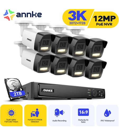 ANNKE Kit Caméra de Surveillance Extérieur nvr avec 8 Caméras Smart Dual Light Vision Nocturne Détection de Mouvement Alarme E-Mail app/pc à Distance