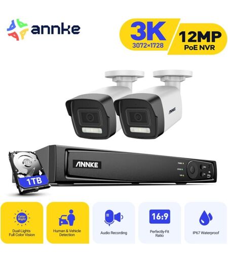 ANNKE Kit Vidéo Surveillance Extérieur 12MP NVR avec 2 Caméras Détection de Personne Alarme par E-Mail Accès à Distance Kit Caméras Surveillance 1TB