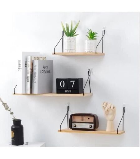 Ensemble De 3 Étagères Murales En Bois Tempsa - Multifonctionnelles - Marron Et Noir Marron Et Noir