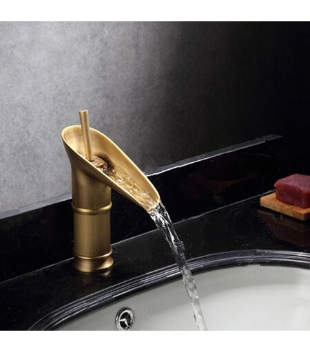 Aiperq - Grifo de baño de bronce antiguo, grifo de lavabo en cascada, mezclador de lavabo alto monomando, grifo de baño con válvula de cerámica,
