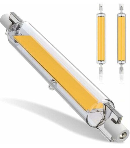【R7S LED 118MM】Bombilla LED R7S 118mm 20W regulable, LED COB de doble cara 2000LM, luz blanca cálida de 3000K extendida en 360 grados de ángulo, casquillo de cerámica bajo en calorías, estructura de conexión a prueba de explosiones, chip LED COB de alta calidad < /p> 【Bajo consumo de energía】Bombilla LED R7S de color blanco cálido de 118 mm, reemplazo perfecto para las varillas halógenas R7S J78 de 80W-100W. Reducir el consumo de energía en un 85%. Los bajos costos de mantenimiento pueden reducir los problemas asociados con el reemplazo frecuente de la lámpara 【Descripción del atenuador】R7S LED 118 mm Admite atenuación, pero solo es compatible con SCR (Rectificador controlado por silicio) Basado en tiristores atenuadores). Nota: Si el atenuador no es compatible, parpadeará al atenuar 【Respetuoso con el medio ambiente】LED R7S de 118 mm, certificado CE y RoHS. Sin plomo ni mercurio, radiación UV o IR. El LED R7S de 118 mm proporciona una fuente de luz estable, una luz natural suave y ...