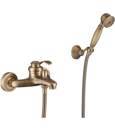 AIPERQ Grifo para bañera con ducha de mano, grifo de ducha con acabado de latón antiguo, montado en la pared con soporte y manguera de ducha para baño