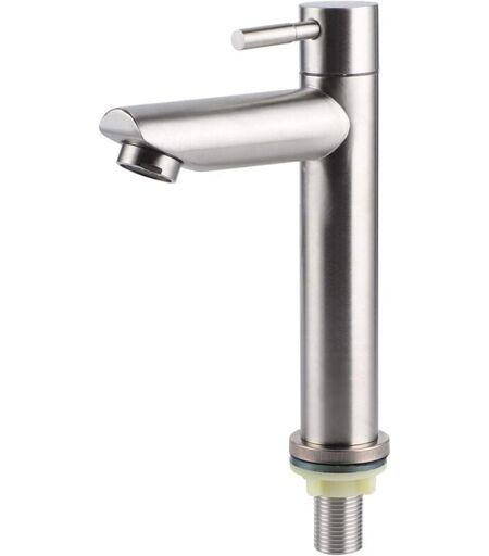 Aiperq - Grifo de fregadero de agua fría de acero inoxidable cepillado, accesorios de baño para el hogar, cocina, baño (grifo de agua fría plano