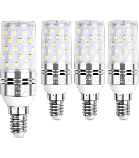AIPERQ Bombilla LED tipo maíz de 12 W, equivalente a 100 W, E14, luz blanca fría de 6000 K, 1200 lm, paquete de 4
