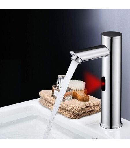 Aiperq - Grifo infrarrojo automático, grifo de agua fría sin contacto, grifo sin contacto que ahorra agua con pilas para lavabo de baño (vertical