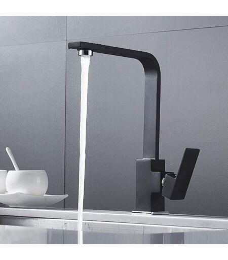 Aiperq - Grifo de Cocina Mezclador Grifo de Cocina Cuadrado con Caño Alto - Grifo Mezclador para Fregadero de Cocina - Latón (Negro)