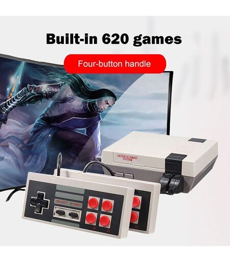 Appareil de jeu portable rétro nostalgique TV maison jeux vidéo classiques intégrés poignée à quatre boutons Console texturée mate augmenter l'interaction Parent-enfant super cadeaux pour enfants adultesCaractéristique:Jeux FC classiques intégrés: la console de jeu comprend 500 jeux/620 jeux intégrés; Les touches peuvent être divisées en 2 touches/4 touches, vous permettant d'y participer toute la journée. Les jeux tombent dans une variété de genres, y compris l'action, le sport, le puzzle, le combat, la course, etc. Les meilleurs jeux des dernières décennies sont inclus dans cette console, et de nombreux adultes sont susceptibles d'être nostalgiques. Les jeux sont difficiles, attrayants et amusants à jouer dos à dos. Console de jeu rétro pour enfants avec console de jeu en brique.Conception scientifique: la console de jeu est de conception simple et riche en fonctions. Il est fabriqué en plastique ABS sûr et non toxique, qui est sans danger pour les adultes et les enfants. La manette de jeu offre aux utilisateurs une prise ferme et évite les risques de dommages et de chutes. Ce pack de jeu contient tout ce dont vous avez besoin pour avoir l'expérience de jeu vidéo classique parfaite à la maison, donnant aux enfants un sentiment de confiance tout en complétant le jeu avec succès.Meilleur cadeau: une console de jeu est une excellente option de cadeau pour toute occasion. Il convient non seulement aux enfants, mais aussi aux adultes. Les jeux inclus dans cette console peuvent être joués par des personnes appartenant à de nombreux groupes d'âge et sont difficiles mais amusants. La texture mate de la console et le design élégant en font également une option de cadeau attrayante.Faciliter la communication parent-enfant: impossible de trouver un sujet pour communiquer avec votre enfant? Une console de jeu classique permet à votre enfant de vivre des expériences et un bien-être croissants et améliore la communication entre parent et enfant. Équipé de 2 joysticks sensibles, plug and play.Spécification:Nom: console de jeuxMatériau: ABS, composants électroniquesSpécifications: US/EUTaille: Hôte 13x10x4.5cm/5.12x3.94x1.77inPoignée 12.2x5.3x1.6cm/4.8x2.09x0.63inNote:En raison du moniteur différent et de l'effet de lumière, la couleur réelle de l'article peut être légèrement différente de la couleur montrée sur les images. Merci!Veuillez permettre un écart de mesure de 1 à 2cm en raison de la mesure manuelle.1 X Hôte2 X Poignées1 X Câble1 X Mode D'emploi1 X Boîte ...