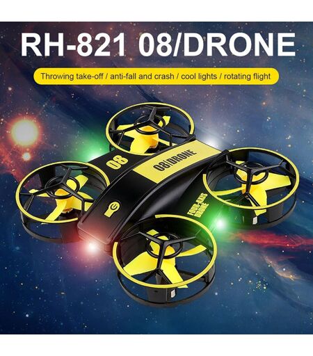 JJRC RH821 Flip Mini RC Drone Helicopter Altitude Hold Remote Control Quadcopter Toys with LightsFeature:1. Just push a button to fly, suitable for boys and girls. Altitude hold function; in headless mode, the direction is always relative to where the pilot is facing; provides worry-free flight for children, beginners, novices, etc.2. The RC mini plane has 3 speed modes, you can race with your friends! Easy-to-use 4-channel remote transmitter for 360° flip stunts.3. The 4 propellers are covered with full protection, not only to protect the propeller wing in the event of a collision, but most importantly to protect the child from the propeller!4. This small indoor plane brings endless fun to parties, schools, fishing, hiking, long trips and more. Birthday/Christmas/Holiday gifts for boys, girls or friends!Specification:Model: RH821Remote control battery: AAA1.5V X 3 (not included)Body battery: 3.7V 300mAh lithium batteryCharging time: 80-100 minutesCharging method: USB chargingFlight time: 5-6 minutesRemote control distance: 40-50 metersColor: Blue, Yellow (optional)Note:Due to the different monitor and light effect, the actual color of the item might be slightly different from the color showed on the pictures. Thank you!Please allow 1-2cm measuring deviation due to manual measurement.1 X USB Cable2 X Fan Blades1 X Instruction1 X 3.7V 300mAh Lithium Battery1 X RC Drone ...