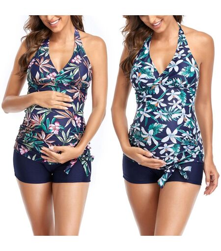 Maillot De Bain De Maternité Vert, Ensemble Deux Pièces, Haut De Grossesse, Short Imprimé Floral, Pour Femmes