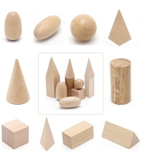 Formes Géométriques En Bois, Solides, 3d, Montessori, Ressources D'apprentissage Pour L'école Et La Maison