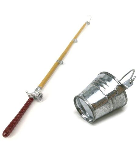 Décoration De Maison De Poupée, Accessoires De Maison De Poupée, Modèle De Canne À Pêche En Métal + Seau D'eau, Scène De Vie De Poupée, 1 Ensemble