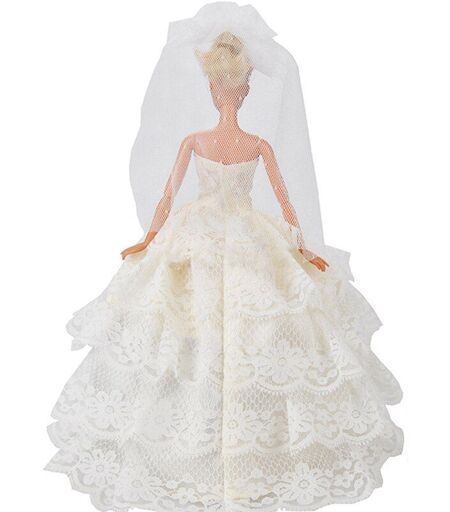 Robe De Mariée En Dentelle Multicouche Et Voile Pour Filles, Robe De Mariée Blanche, Vêtements De Poupées, Accessoires, Cadeau D'anniversaire Pour Enfants
