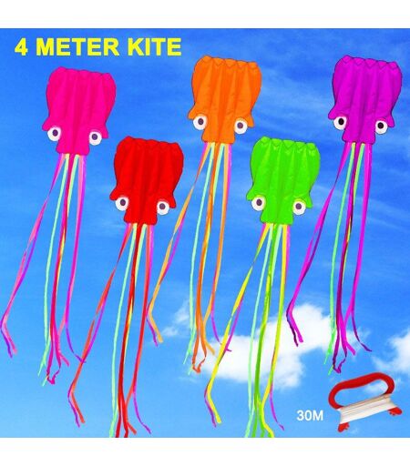Grand Cerf-Volant De 4m, Pliable, Pieuvre, Avec Ficelle De 30m, Offre Spéciale