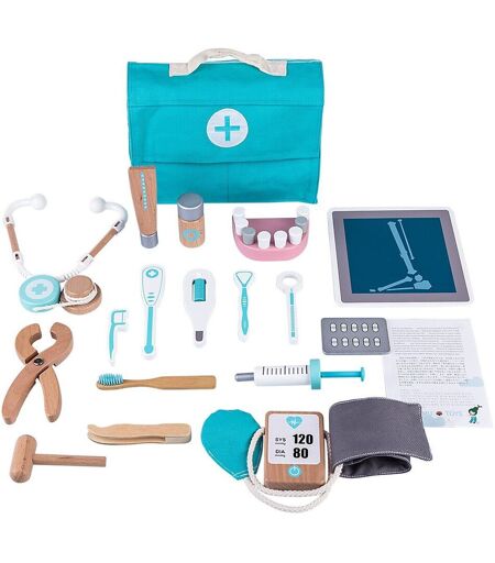 Boîte à outils de dentiste en bois pour enfants, ensemble de jeu médical avec stéthoscope 18 piècesCaractéristiques:. Bois écologique, lisse et sans bavures, couleur douce, magnifiquement conçu. Peinture écologique à base d'eau, sûre et non toxique, protège la santé de votre bébé. Une variété d'accessoires, avec un petit sac à dos en tissu, facile à ranger, pour répondre au rêve de bébé de devenir médecin. Cultiver votre bébé à comprendre les connaissances médicales et à surmonter la peur de prendre des médicaments. Champ d'application: pour la démonstration des connaissances médicales en classe, jeu de rôle à domicile, classe de puzzle d'éducation précoce. Convient aux plus de 3 ansSpécifications:. Couleur: vert. Matériau: bois + tissu. Dimensions du produit: 8.6x7.5x3.1cm. Poids du produit: 620g. Dimensions du colis: 23x7.5x19cm. Poids du colis: 650g. Emballage: Carton graphiqueContenu de l'emballage:. 1 x stéthoscope. 1 x pommade. 1 x réservoir de médicaments. 1 x pilules. 1 x moule dentaire. 1 x pinces. 1 x Scorpion. 1 x marteau. 1 x brosse à dents. 1 x seringue. 1 x tensiomètre. 1 x écran CT. 4 x outil d'inspection. 1 x sac à main. 1 x fil dentaire ...