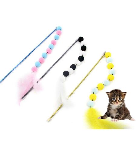 Pom Pom Chat, Jouet Interactif Et Amusant, Avec Plumes, Couleur Aléatoire, Clochette, Chaton