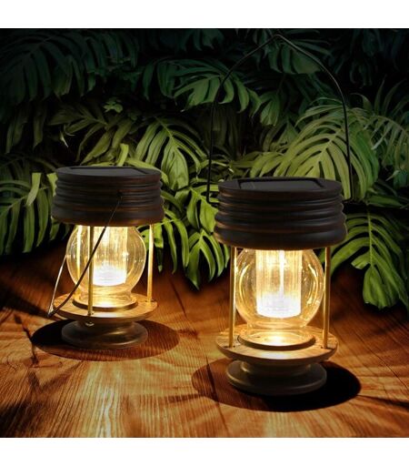 LITZEE Lanterne Solaire Exterieur Jardin Decorative Étanche IP44 Lot de 2 Lanternes Solaires Suspendues Vintage led Lumières Table Lampe pour Arbre Patio