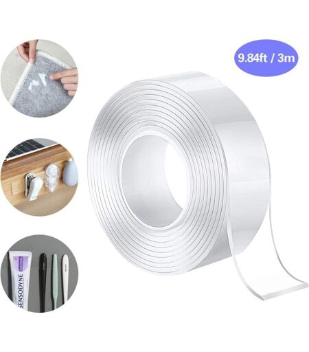 LANGRAY Ruban Adhesif Double Face 3M Nano Tape, Transparent Sans Trace Bande de Tapis Extra Fort, Haute Temperature Etanche Rubans adhésifs ni Clous ni Vis-