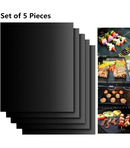 LANGRAY Set de 5 Tapis de Cuisson Tapis bbq Barbecue Plaque Feuille de Cuisson Four 40 33cm pour Barbecue gaz Charbon électrique 100% Anti-adhérent -